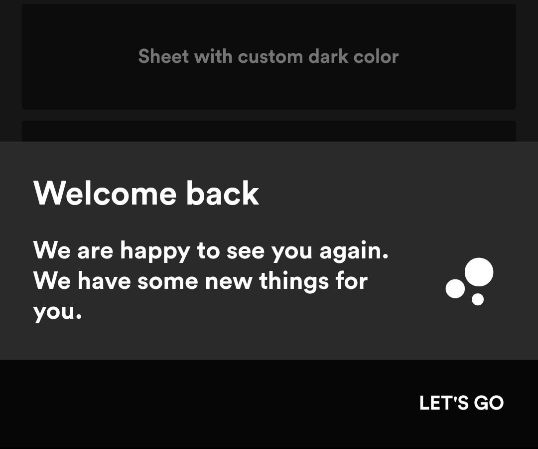 Pour personnaliser, créez une nouvelle instance de CustomSheetColor et passez-la à l'argument color lors de l'appel de la méthode show().