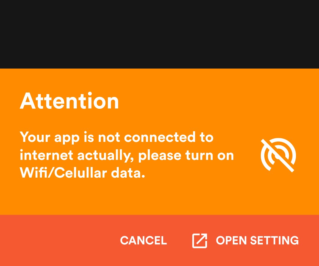 'Your app is not connected to internet actually, please turn on Wifi/Celullar data.'),